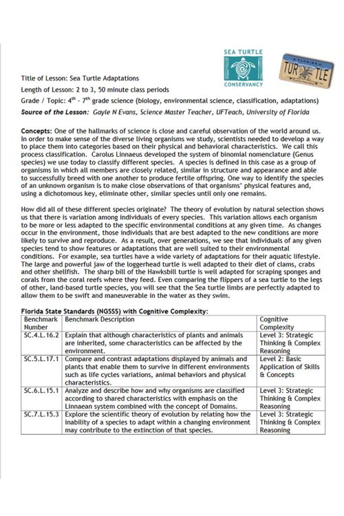 - Sea Turtle Anatomy/Adaptations Animation (Video below, or click link to view on YouTube)