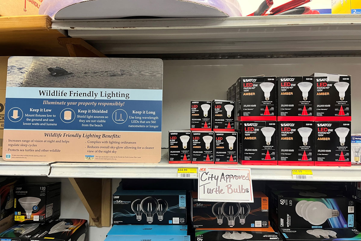 To help bridge this gap, Sea Turtle Conservancy (STC) is working to connect home improvement and retail stores that are interested in selling wildlife lighting products with manufacturers capable of selling wildlife lighting products directly to local stores to give coastal homeowners easier access to approved fixtures and bulbs. Stores that carry approved product are provided a professional display to help educate customers about wildlife lighting solutions. The home improvement store initiative aims to bring a broad awareness of the benefits of wildlife lighting to coastal communities while making product more accessible.