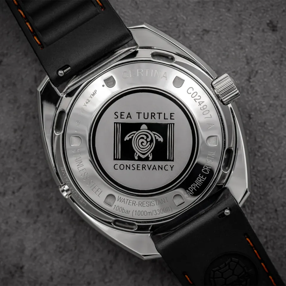 STC has a partnership with the Swiss watchmaker, Certina. While Certina has been making high-end timepieces since 1888, it was in 1959 that the company developed its renowned dive watch technology and adopted the sea turtle as its official logo. The year 1959 also happens to be the year STC was formally established as the world’s first sea turtle conservation organization. As part of this partnership, Certina has issues a variant of one of their dive watches that includes the STC logo engraved on the bottom of the watch.