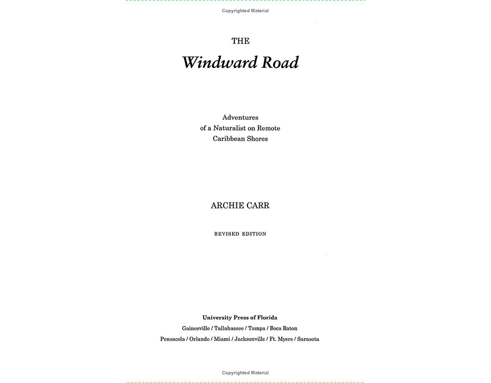 In 1956, Dr. Archie Carr started the global movement to protect sea turtles with his book The Windward Road: Adventures of a Naturalist on Remote Caribbean Shores. The book follows Dr. Carr on a fantastic journey through the Caribbean in search of green turtle nesting beaches. This book alerted the world to the decline of sea turtle populations and sparked an international interest in the conservation of sea turtles and led to the founding of the “Brotherhood of the Green Turtle,” today known as the nonprofit Sea Turtle Conservancy. The Windward Road also won several awards, including the John Burroughs Medal from the American Museum of Natural History. A revised edition of The Windward Road was published in March 2013. The new edition includes a foreword by David Godfrey, the Executive Director of Sea Turtle Conservancy.