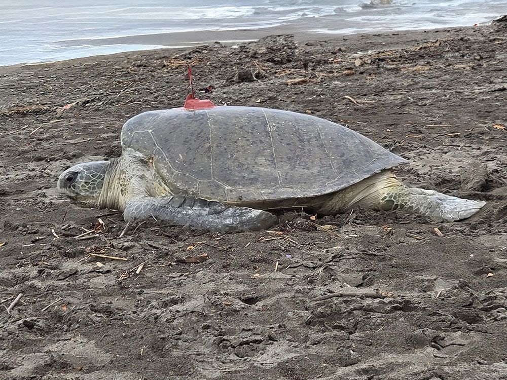 Esmeralda is an adult female green sea turtle released with a satellite transmitter on July 17, 2025 from Tortuguero National Park in Costa Rica. She measured 109.5 cm in curved carapace (shell) length. Esmeralda was named by her sponsor, Shark Reef Aquarium and is taking part in the 2025 Tour de Turtles.