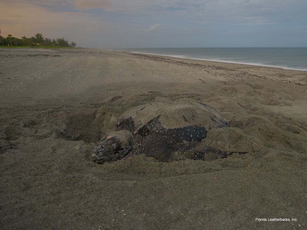 Moana was originally flipper tagged by Florida Leatherbacks, Inc. in May, 2017 and was seen nesting again in 2021. She was observed nesting on June 10, 2023 on Jupiter Island, Florida, USA, and she is larger than average at 158.0 cm carapace (shell) length. She took part in the 2023 Tour de Turtles, was named by Florida Leatherbacks, Inc. and is Sponsored by Shark Reef Aquarium.