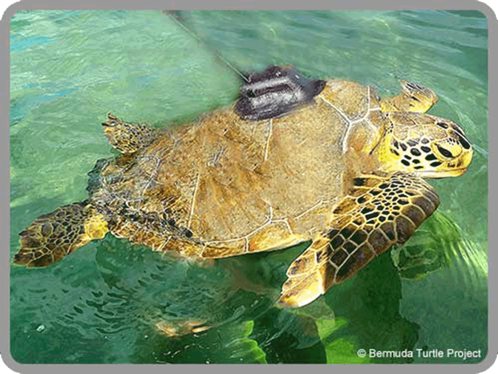 RC is an immature green turtle that was captured in Stock’s Harbour, Bermuda, on August 15, 2023. RC measured 48.8 cm straight carapace (shell) length. The turtle was captured as part of the Bermuda Turtle Project which focuses on the study of immature green turtles in developmental habitat.