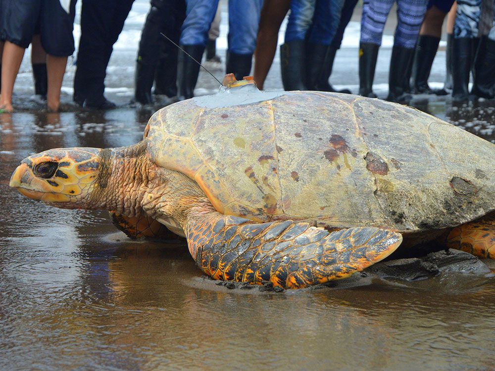 Tiki is an adult female hawksbill sea turtle released on July 2, 2015 with a satellite transmitter after nesting in section 2/8 on Tortuguero Beach, Costa Rica. She measured 90.9 cm curved carapace length. Tiki took part in the 2015 Tour de Turtles and was named by her sponsors, Contiki and TreadRight Foundation.