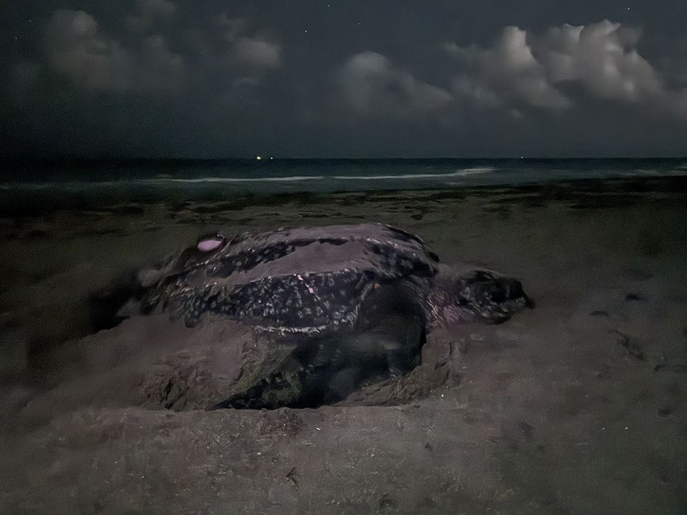 Tortellini is an adult female leatherback sea turtle encountered nesting on May 3, 2024 on Jupiter Beach, FL. She was first flipper tagged by Florida Leatherbacks, Inc. in 2020 on Hutchinson Island, Florida, and she was seen again nesting in 2022. She is an above average sized girl at 161.0 cm carapace (shell) length and she is taking part in the 2024 Tour de Turtles. She was named by her Sponsor, Fahlo.
