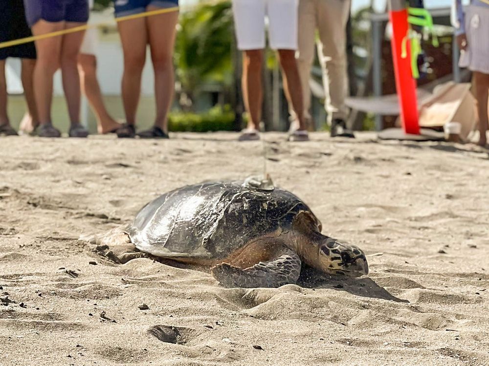 Twinkle is an adult hawksbill sea turtle released on July 21, 2024 with a satellite transmitter. She was encountered nesting on Lovers Beach, Nevis and measured 81.cm curved carapace (shell) length and 78.0 cm curved carapace width. Twinkle was named by her Sponsor, Four Seasons Resort Nevis, and took part in the 2024 Tour de Turtles.
