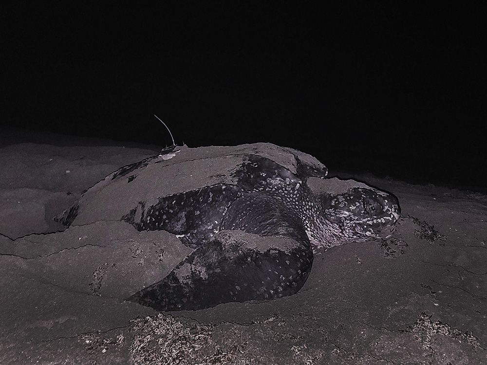 Victory is an adult female leatherback sea turtle encountered nesting on May 28, 2024, on Soropta Beach, Panama. She measured 144.1 cm in curved carapace (shell) length and 103.5 cm curved carapace width, and she laid 36 fertile eggs and 75 unfertilized eggs. Victory is taking part in the 2024 Tour de Turtles and was named by her Sponsor, Atlantis, Paradise Island.